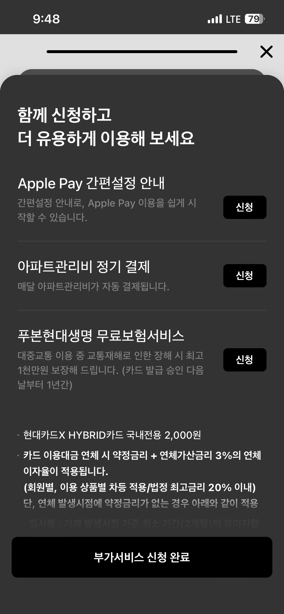 '부가서비스 신청 완료'를 누릅니다.
