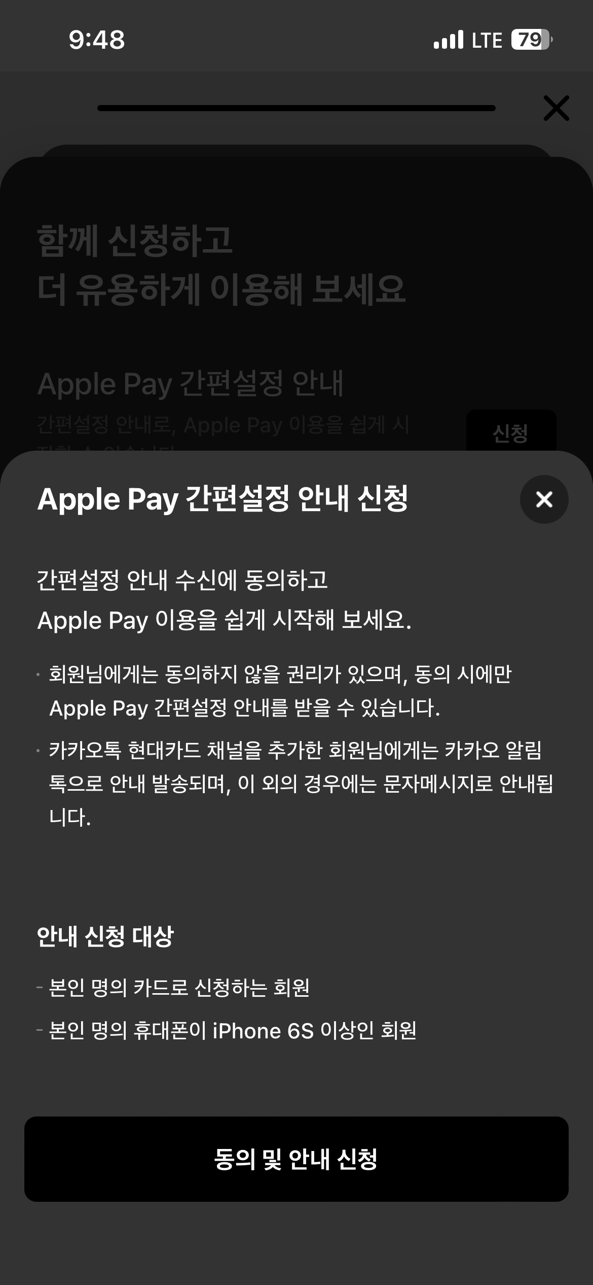 마지막에 'Apple Pay(애플페이) 간편설정 안내'를 '신청' 해줍니다.