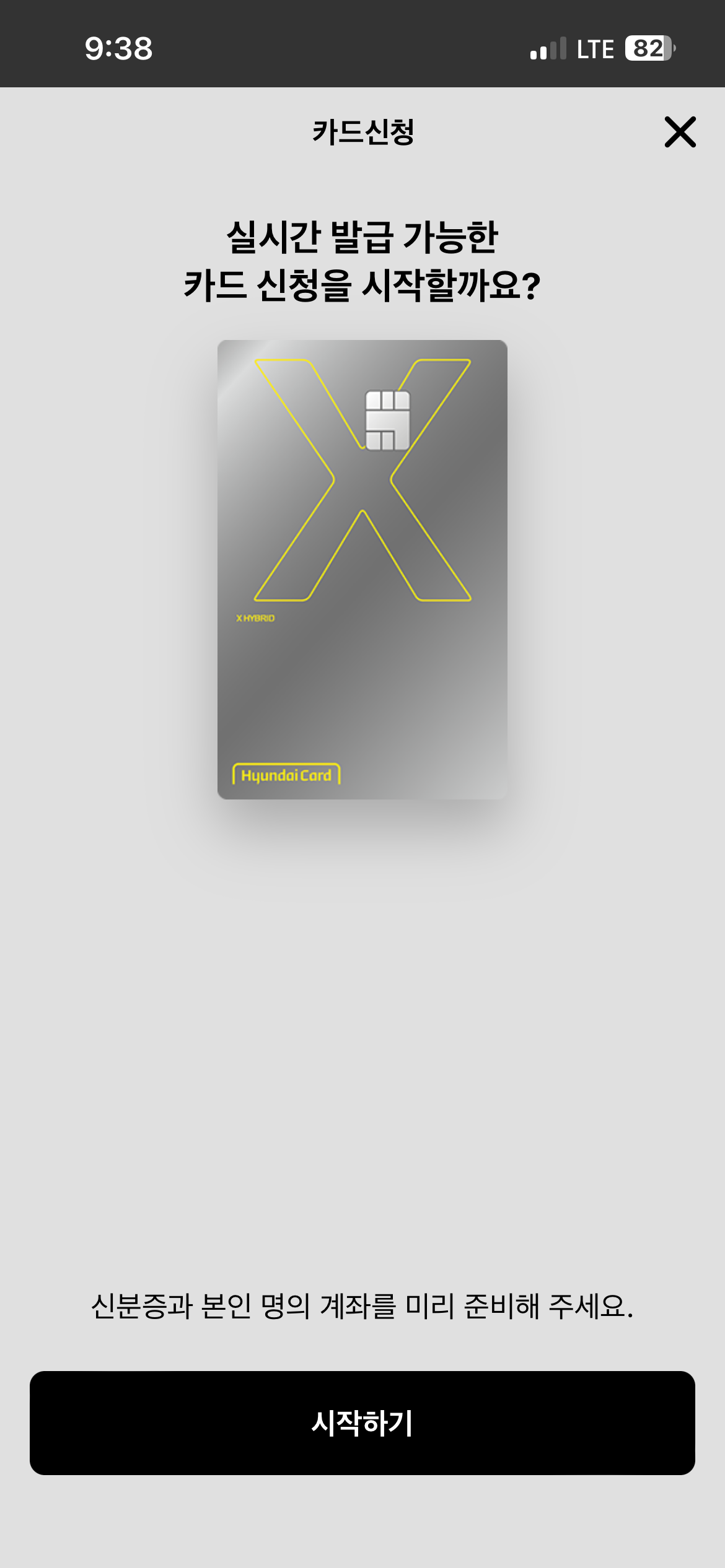 카드신청 '시작하기'를 눌러줍니다.