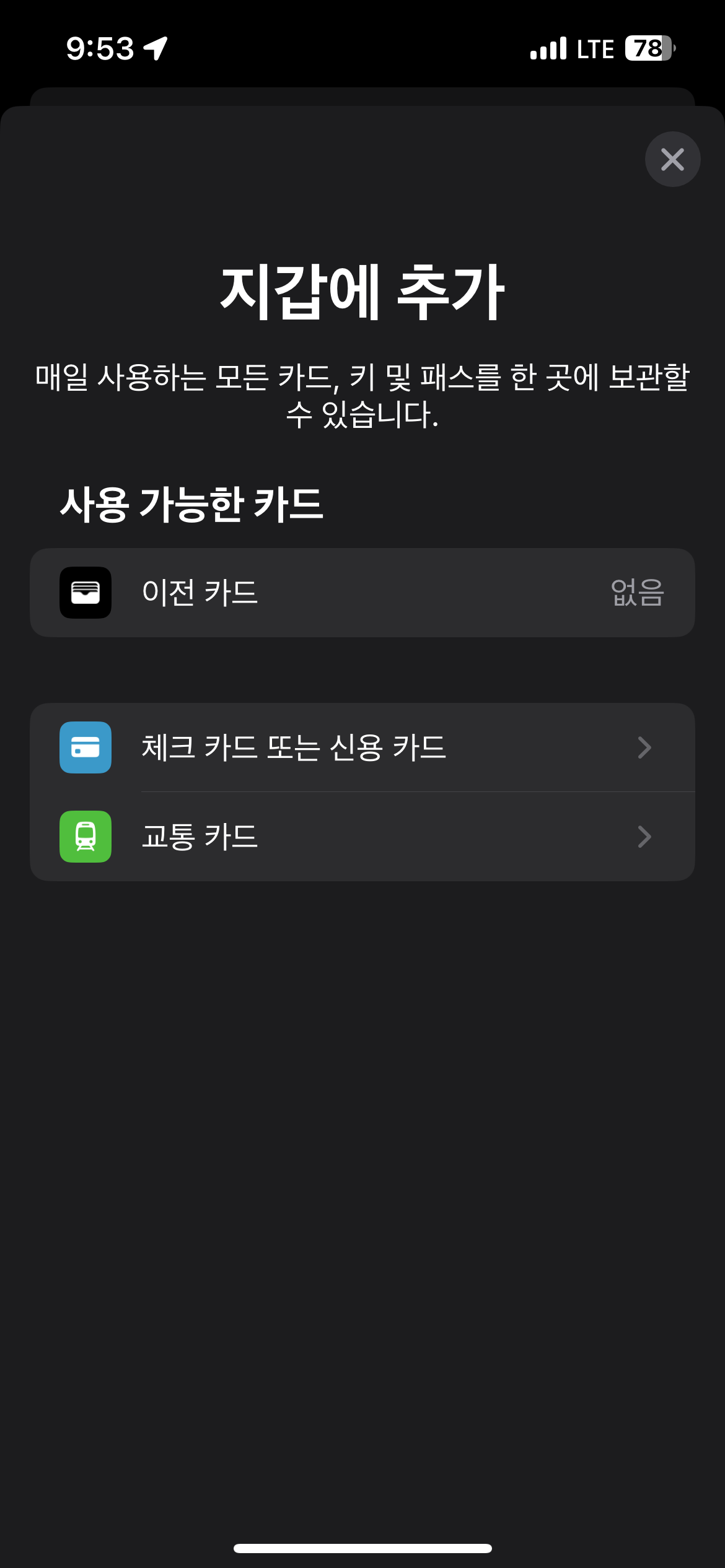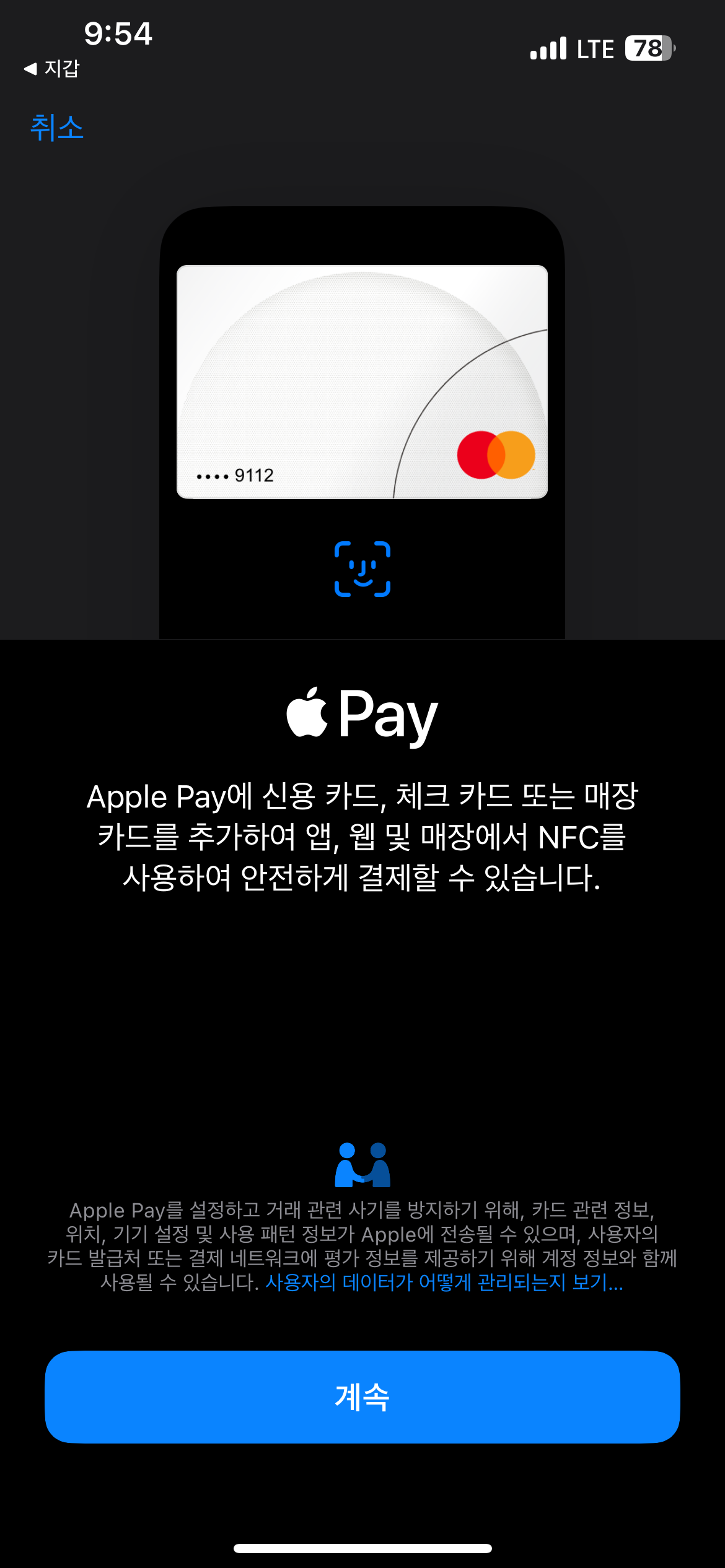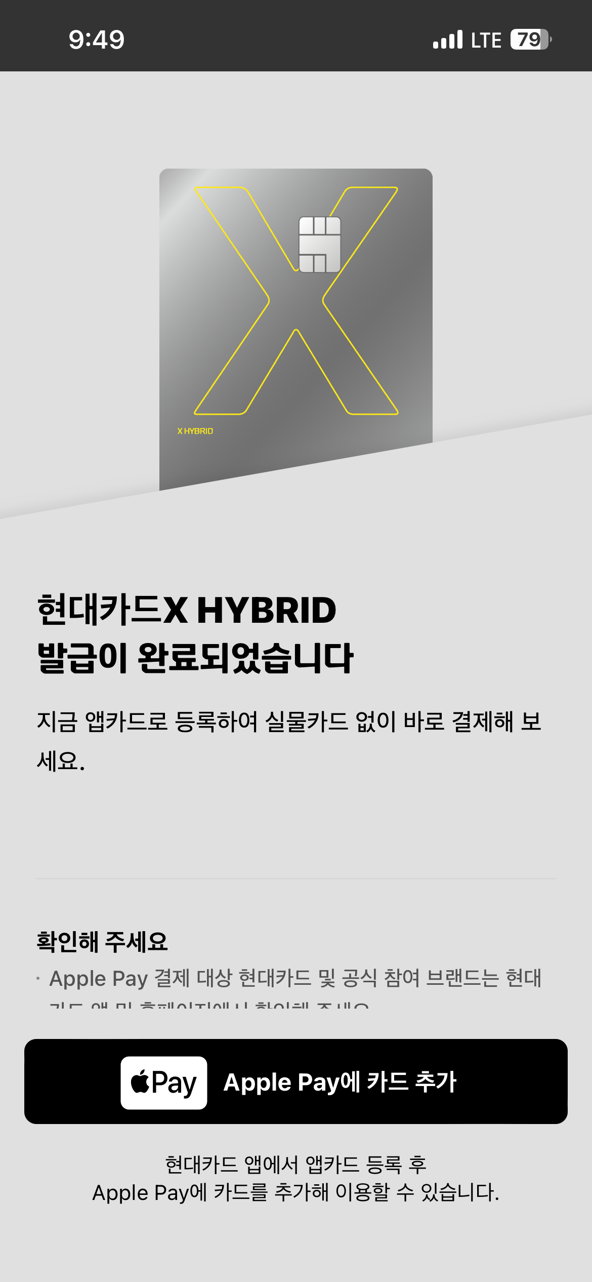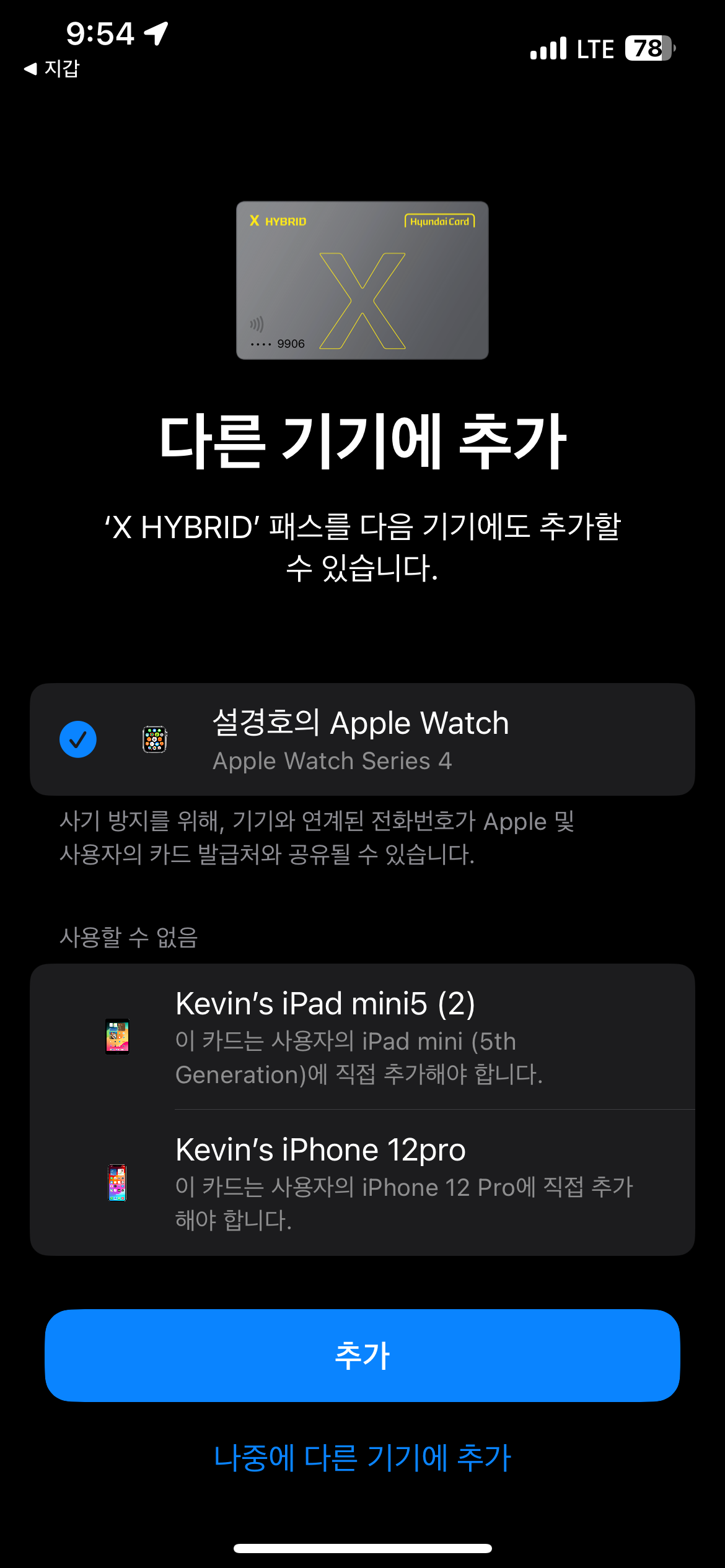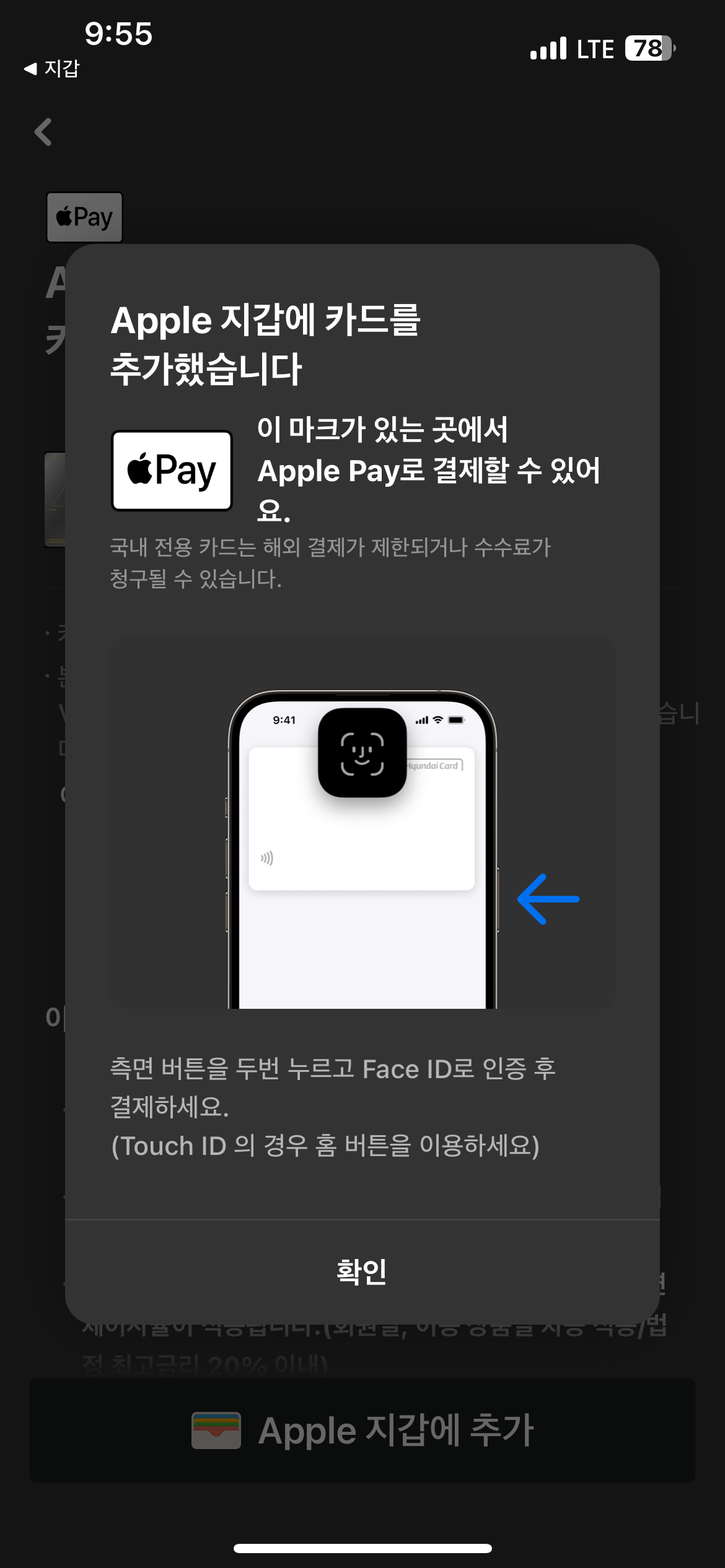 애플페이에 추가 완료되었습니다.