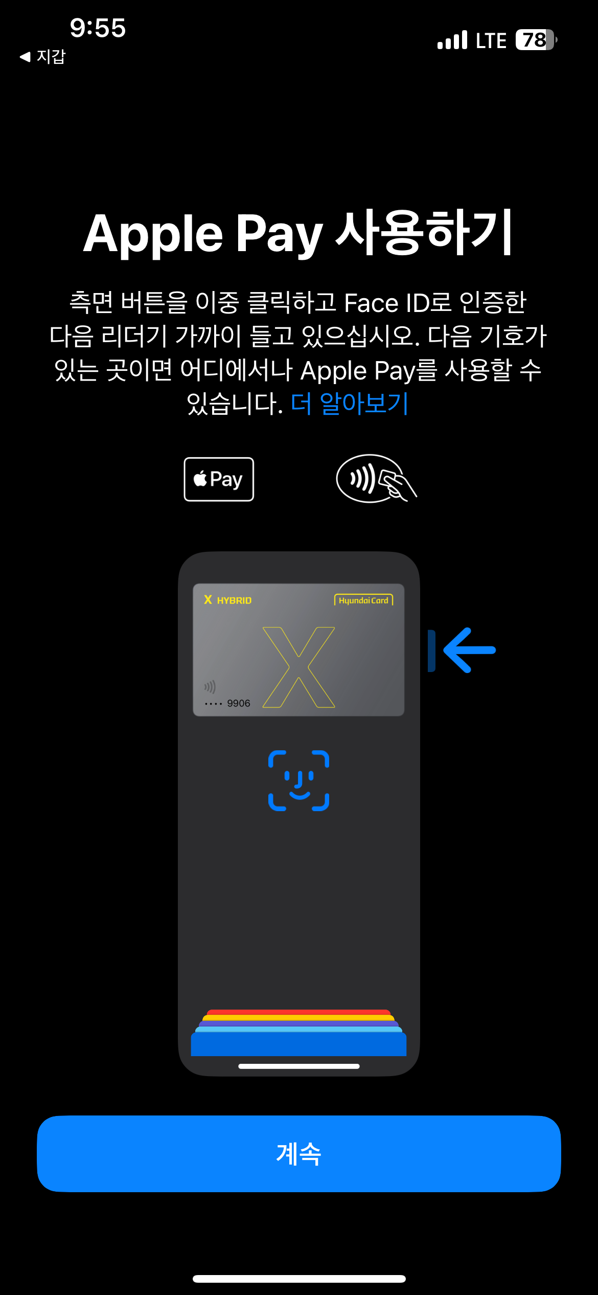 이제 애플페이를 사용할 수 있습니다.