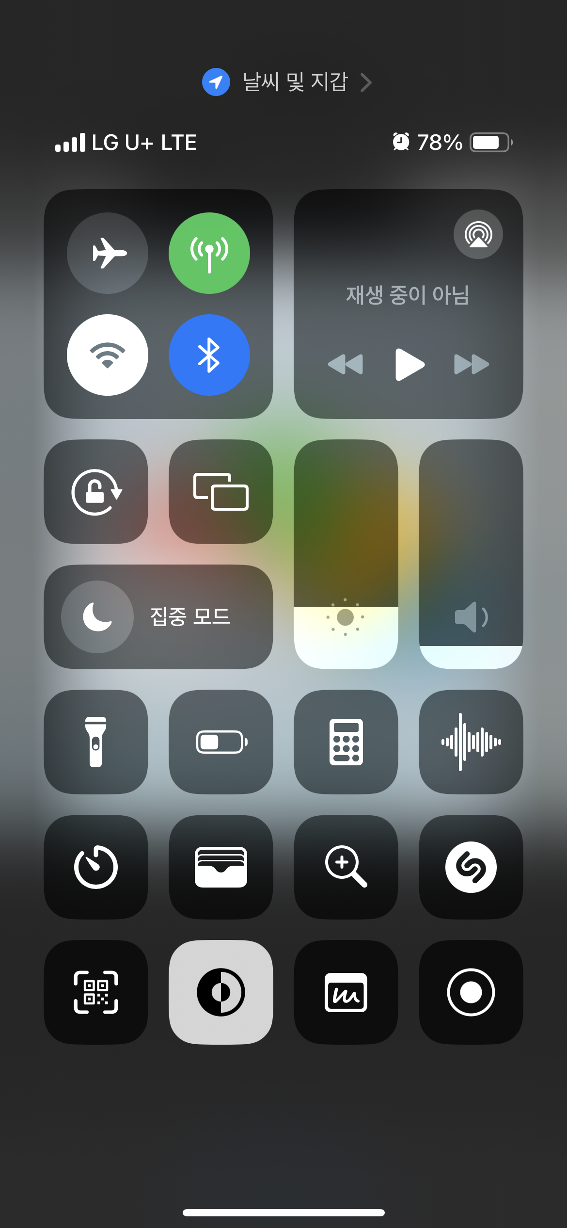 아이폰 제어창(화면을 위에서 아래로 쓸어내림)에서 애플워치 '지갑' 아이콘을 클릭합니다.