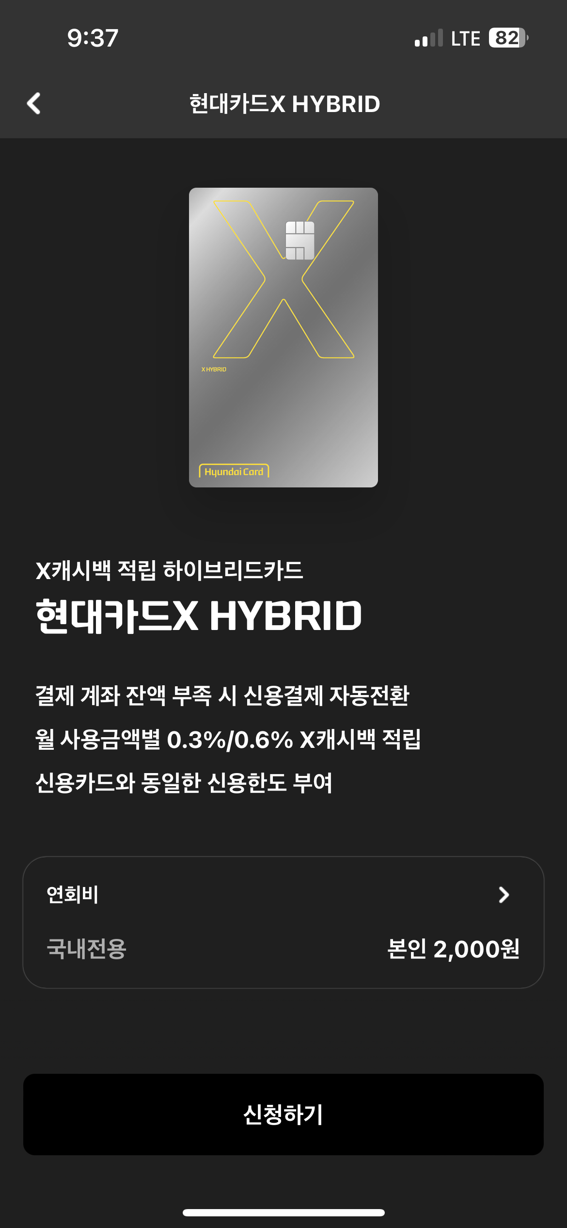 현대카드 X HYBRID 카드를 선택하였습니다.
